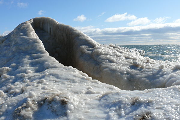 去年2月,在美国密歇根湖附近也曾发现了一座类似的冰山。