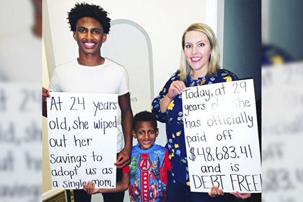 切尔西‧海莉(Chelsea Haley)是17岁的杰罗姆(Jerome)和6岁的杰斯(Jace)的单亲妈妈,她12月4日对《早安美国》表示,知道自己不再背负债务,简直像做梦一般。