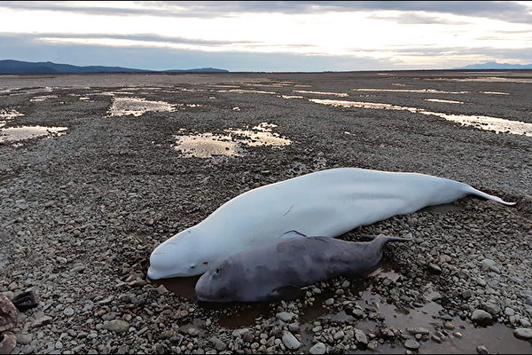 据《西伯利亚时报》报导,这3条白鲸于10月14日在退潮时搁浅在乌第河(River Uda)的出海口,距离大海约1.5公里。其中,白鲸妈妈和小白鲸趴在河床上,相距一段距离,还有另一条成年白鲸在不远之处。