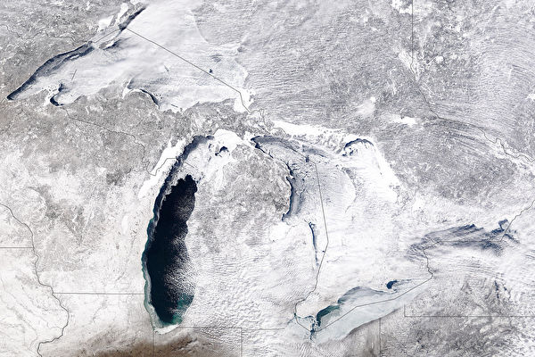 在每年冬季,伊利湖通常会比五大湖的其他湖泊更快结冰。但今年该湖湖面仅有不到十分之一结冰。最近的强风加速了伊利湖湖岸的结冰,分别在加拿大和美国境内创造出奇特的岸边景致。